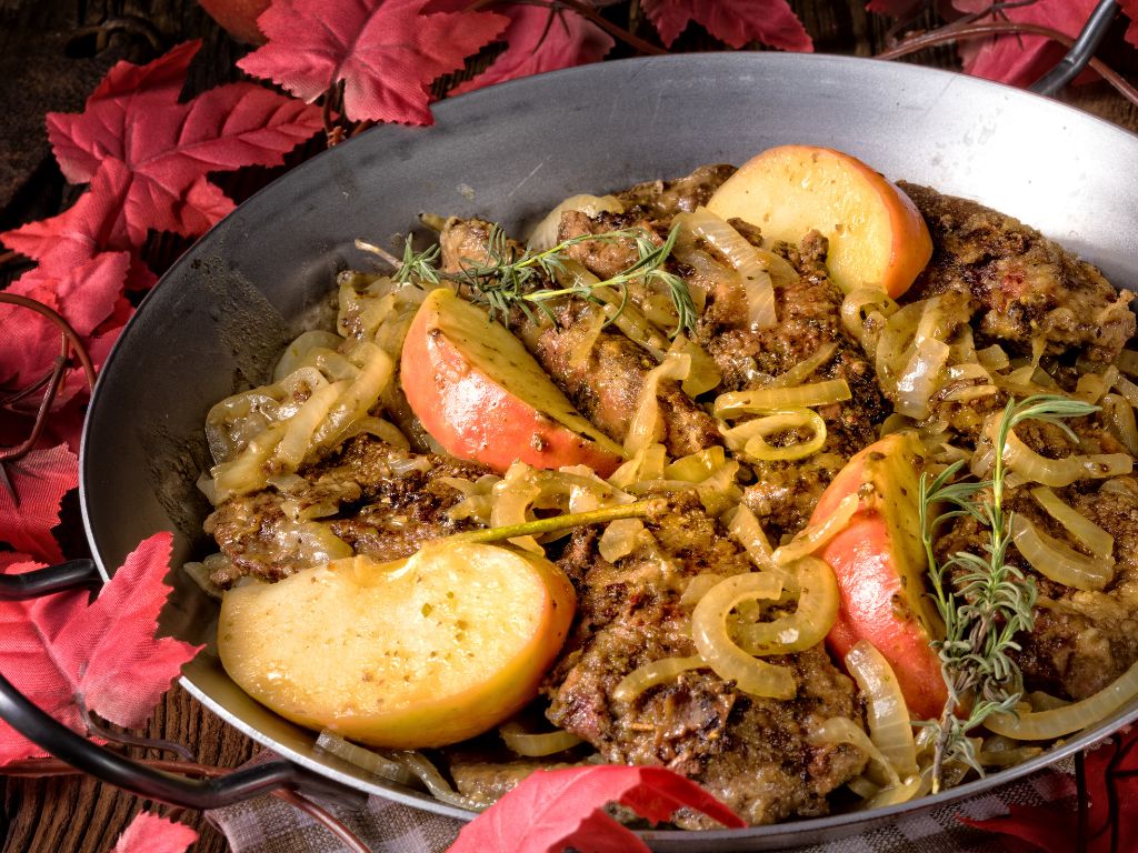 Smażona wątróbka i maślane purée ziemniaczane wraz z surówką z ogórka kiszonego